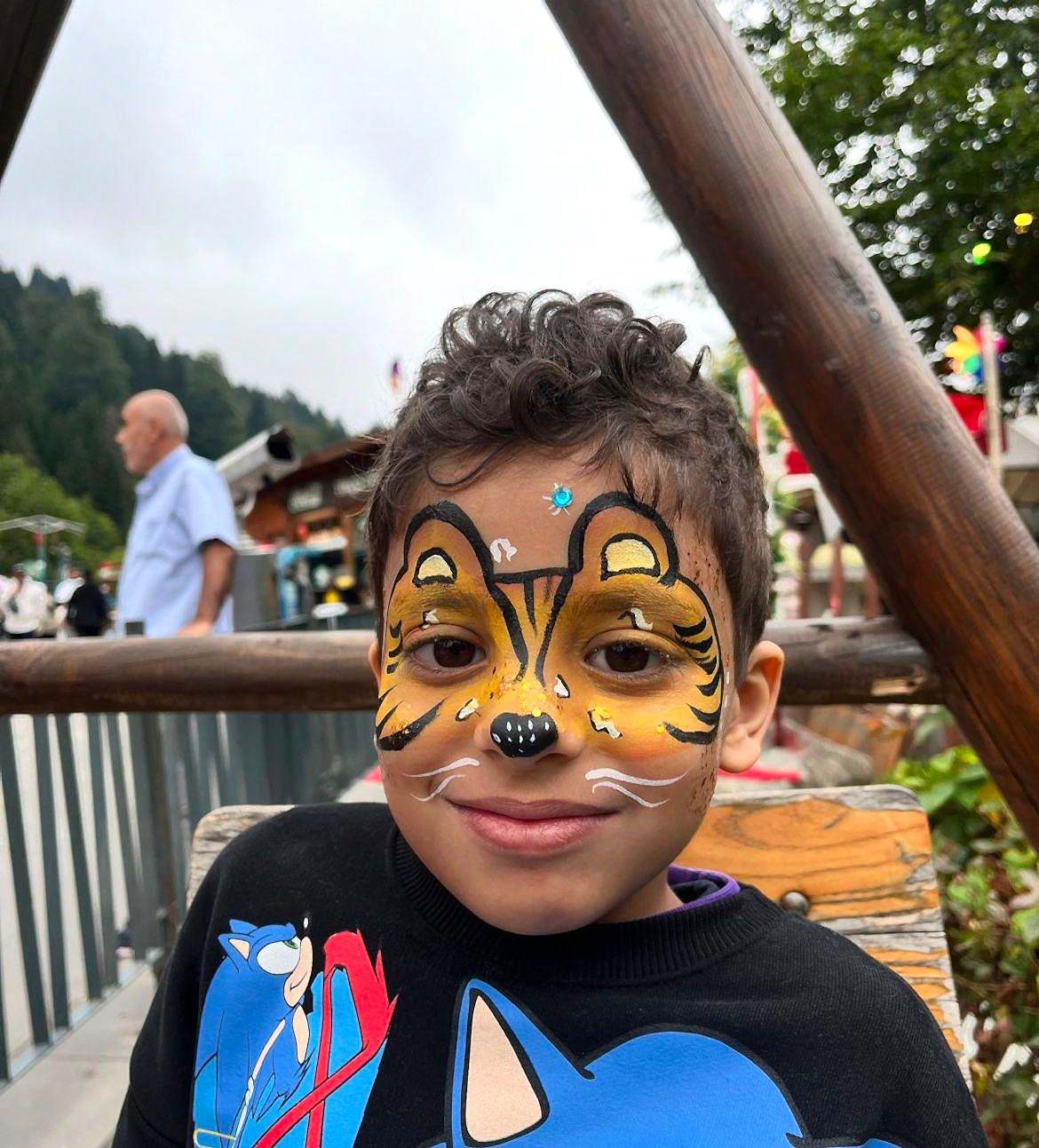 Kimi zaman bir prenses tacı, kimi zaman bir kaplan pençesi ya da sevimli bir tavşan burunu… Yüz boyama istasyonumuzda çocuklar, içlerinde sakladıkları karakteri seçer, bizse onu itinayla yüzlerine taşırız. Her figür, onların renkli dünyasına uyum sağlayacak şekilde özenle tasarlanır.